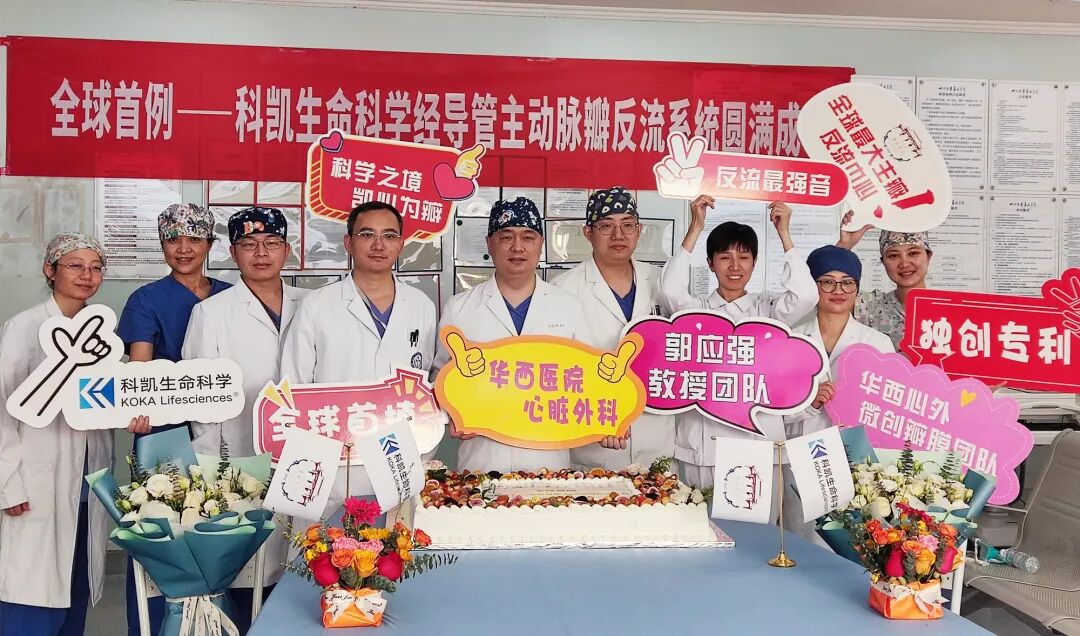 公司已经研发了多款具有自主知识产权的心血管介入类产品,其中首个介入产品——二尖瓣瓣膜修复系统 LIFECLIP 已于2021年7月进入正式注册临床试验阶段,并在初步临床应用中显示出良好的安全性和有效性。 此外,公司还重点打造了经股二尖瓣瓣膜修复系统 KokaClip 和经股置换瓣膜KokaValve,这些产品都具有独特的技术优势和特点,已经通过伦理审查并即将进入临床阶段。 # 经导管自膨主动脉瓣膜系统 郭应强教授表示:站在临床角度看,目前主动脉瓣反流产品的核心难点在于瓣膜的完全同轴性,锚定系统的可旋转能力及操控性,科凯生命科学的 PIONEER TAVR主动脉瓣反流系统三维空间调弯为世界首创,创造性的解决了经股动脉治疗单纯主动脉瓣关闭不全同轴性难点,瓣膜定位装置可回收,锚定装置可独立旋转,大幅提升手术安全性,并且瓣膜植入位置精确可控,大幅降低了患者起搏器植入风险。 # FIM 临床试验 FIM 首例入组: 2023年1月18日,四川大学华西医院郭应强教授领衔的华西心外微创瓣膜团队,成功应用科凯生命科学 PIONEER TAVR主动脉瓣反流系统为一位外科高危重度主动脉瓣关闭不全患者实施了经股动脉主动脉瓣置换术。此次手术为 PIONEER TAVR主动脉瓣反流系统 FIM 临床试验首例入组,导管操作仅15分钟,手术非常顺利。 四川大学华西医院郭应强教授团队术后合影 患者详情: 女性,81岁,3+年前无明显诱因出现活动后头晕、胸闷、气促、视物黑朦、头疼、恶心呕吐等;完善超声心动图提示主动脉瓣反流(重度),二尖瓣反流(轻中度),左室收缩功能减退,STS评分18.809%。 术前CT显示:患者主动脉瓣三叶式,无冠窦略增大,瓣叶无明显增厚和钙化,患者主动脉瓣环周长85.1mm,折算直径约27.1mm,左侧髂动脉略迂曲。 手术过程: 经多学科讨论,郭应强教授决定植入 29mm PIONEER TAVR瓣膜。 术中为患者成功植入 29mm PIONEER TAVR 瓣膜,术后无反流及瓣周漏。患者术前主动脉压力为 109/32mmHg,术后主动脉压力为 108/63mmHg。 术后患者DSA造影及TEE超声显示介入主动脉瓣膜位置良好,无瓣周漏。术后监测,心率心电正常,无传导阻滞。 术后效果良好 完成 FIM 研究: FIM 研究由华西医院郭应强教授带领的瓣膜团队完成,纳入的10位患者均成功完成手术,无中转外科或死亡,30天随访瓣膜血流动力学稳定,跨瓣压差低,无残余AR,临床效果显著。该项技术突破已经在国际权威心血管杂志《美国心脏病学会杂志》(JACC)上发表。 FIM 研究结果证明,这款新型 TAVR 系统的植入是可行且安全的,短期结果显著。该研究纳入10例患者(男性40.0%,平均年龄72.5±1.6岁,平均STS评分9.7%±1.4%,100%为单纯重度AR),采用 PIONEER TAVR 主动脉瓣反流系统(分别为25#、29#和31#各2例,27#4例),平均手术时间42.0±3.0分钟,平均造影剂量127±7.0 mL。 根据术前CT评估瓣环直径,平均oversize率为6.0%±1.1%。重症监护病房平均住院时间为1.3±0.2天,住院时间为8.8±1.3天。术后30天超声随访显示,10位患者平均跨瓣压差为 10.5±0.9 mm Hg,只有1例患者出现轻度瓣周漏(PVL)。
